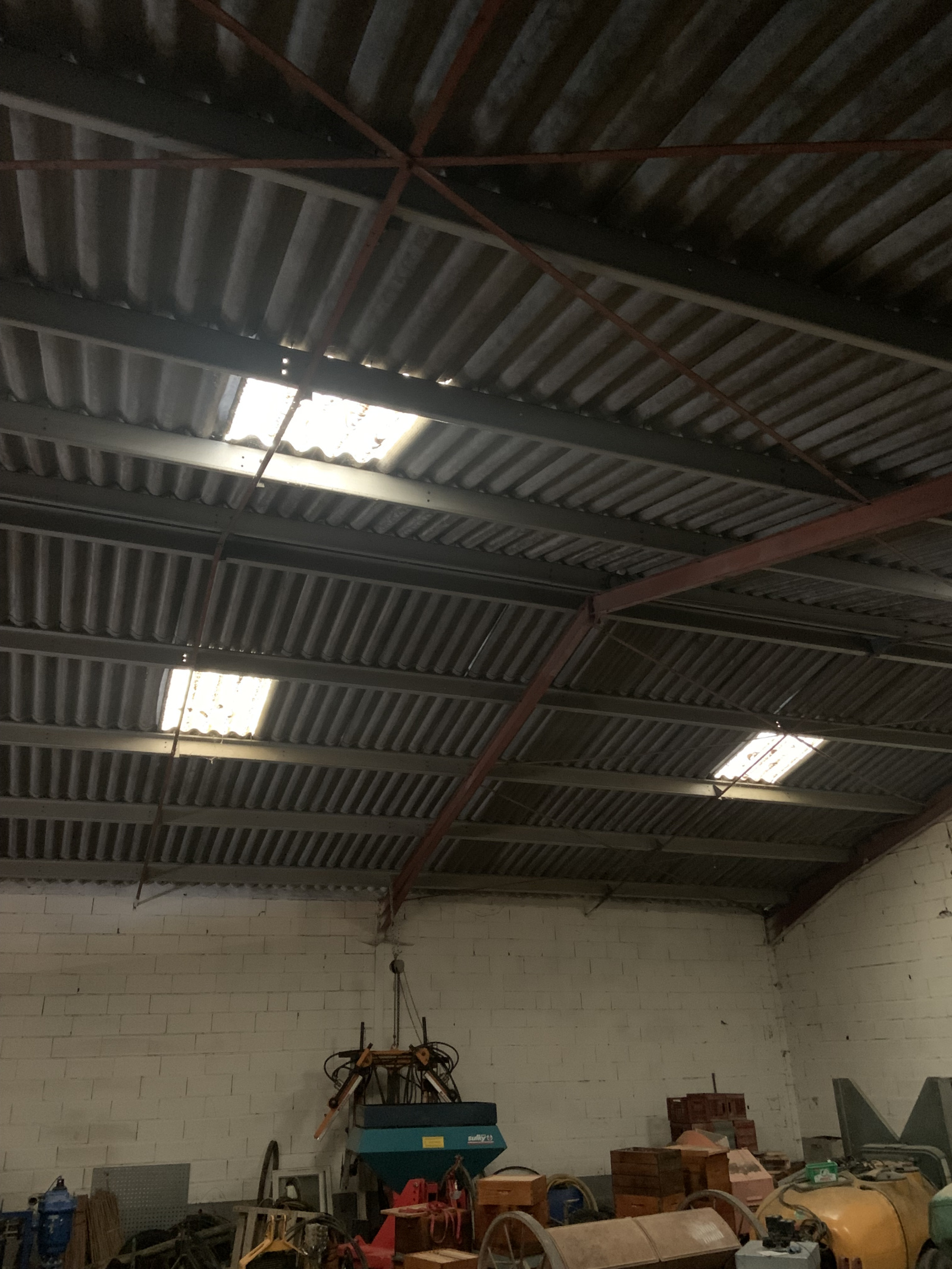 - Cave à vin de 200 m² avec dalle en béton, hauteur sous plafond jusqu’à 7 mètres, grand portail coulissant sur rail.
